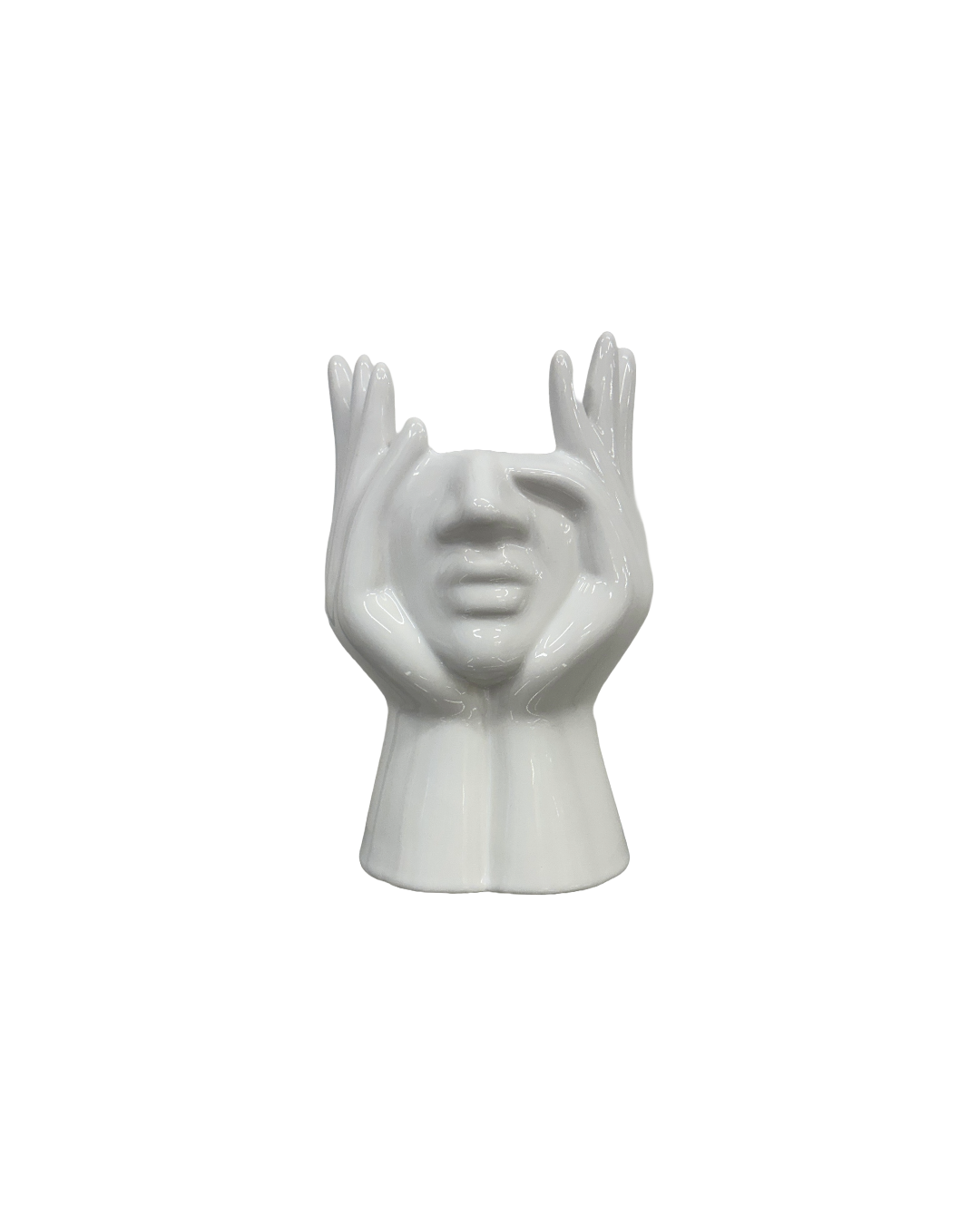 Omniacasa Vaso Decorativo in Ceramica – Mani con Volto, Bianco, Stile Moderno e Artistico
