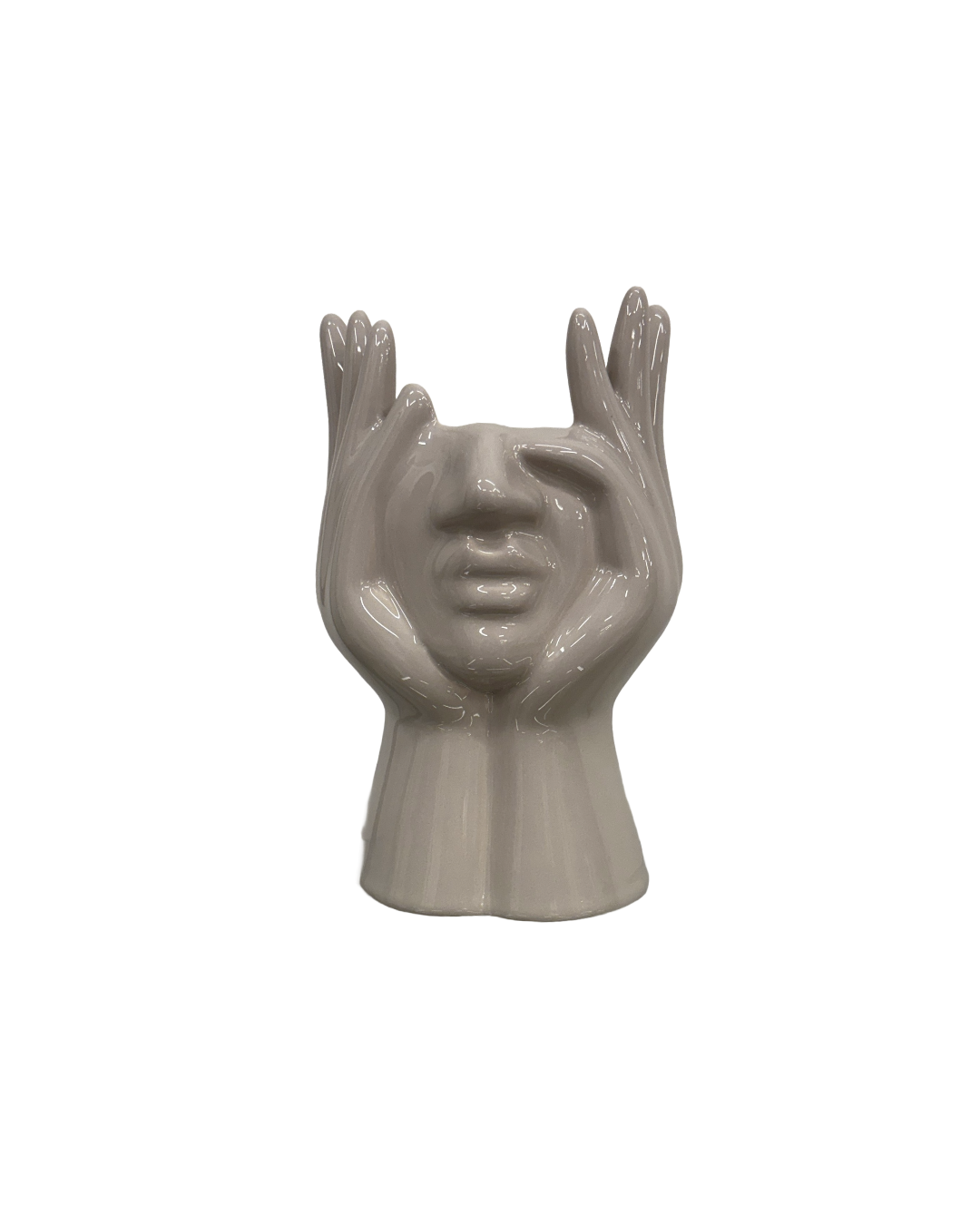 Omniacasa Vaso Decorativo in Ceramica – Mani con Volto, Tortora, Stile Moderno e Artistico