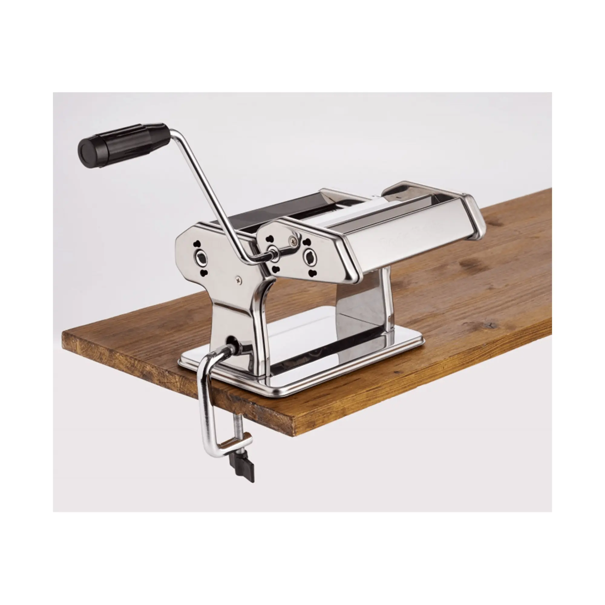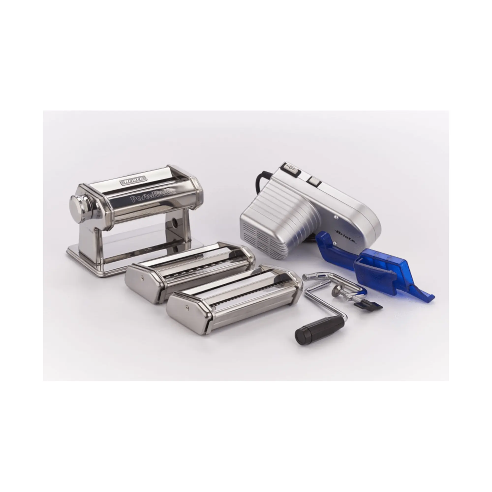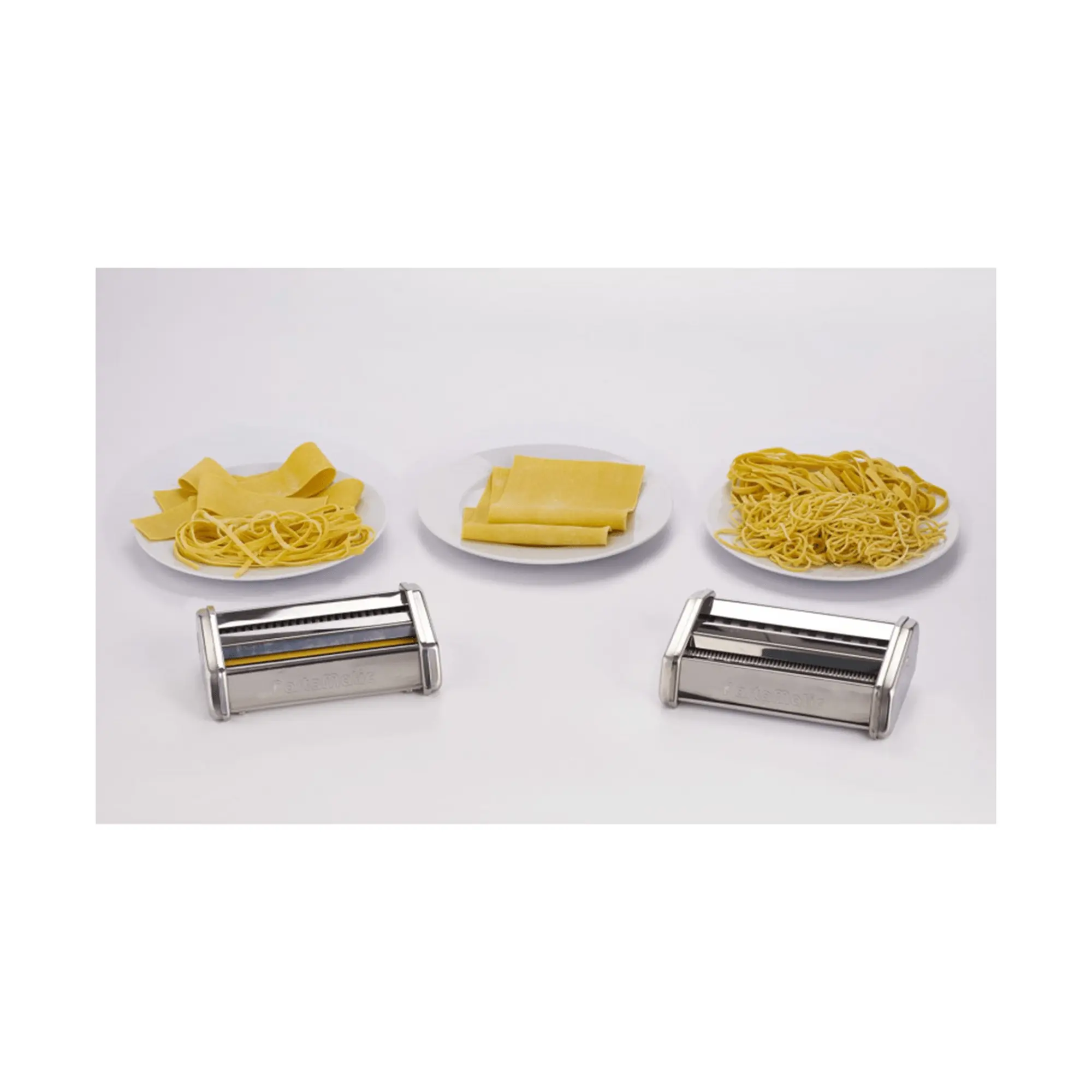 Macchina per pasta elettricaCon Pastamatic 1593 di Ariete puoi creare la pasta fresca fatta in casa come una volta, ma in modo facile, veloce e senza sforzo manuale. Questa macchina per pasta elettrica ti permette di scegliere tra 9 livelli di spessore per la sfoglia e di tagliarla in 5 formati diversi: lasagne, pappardelle, fettuccine, tagliatelle e tagliolini. Grazie al motore laterale efficiente, puoi lavorare per un'ora in modo continuo senza preoccuparti della qualità della pasta che viene sempre stesa in modo uniforme e liscia. Il corpo completamente in Acciaio Inox ti garantisce robustezza e solidità, mentre la macchina per pasta elettrica Pastamatic 1593 può anche essere trasformata in una tira pasta manuale. Con Pastamatic 1593 potrai creare lasagne, tagliatelle, tagliolini, pappardelle, tortellini e ravioli, divertendoti a dare forma alla tua pasta preferita. Che tu voglia preparare grandi quantità di pasta fresca o solo un piatto per la tua famiglia, Pastamatic 1593 rende facile la tua esperienza culinaria.