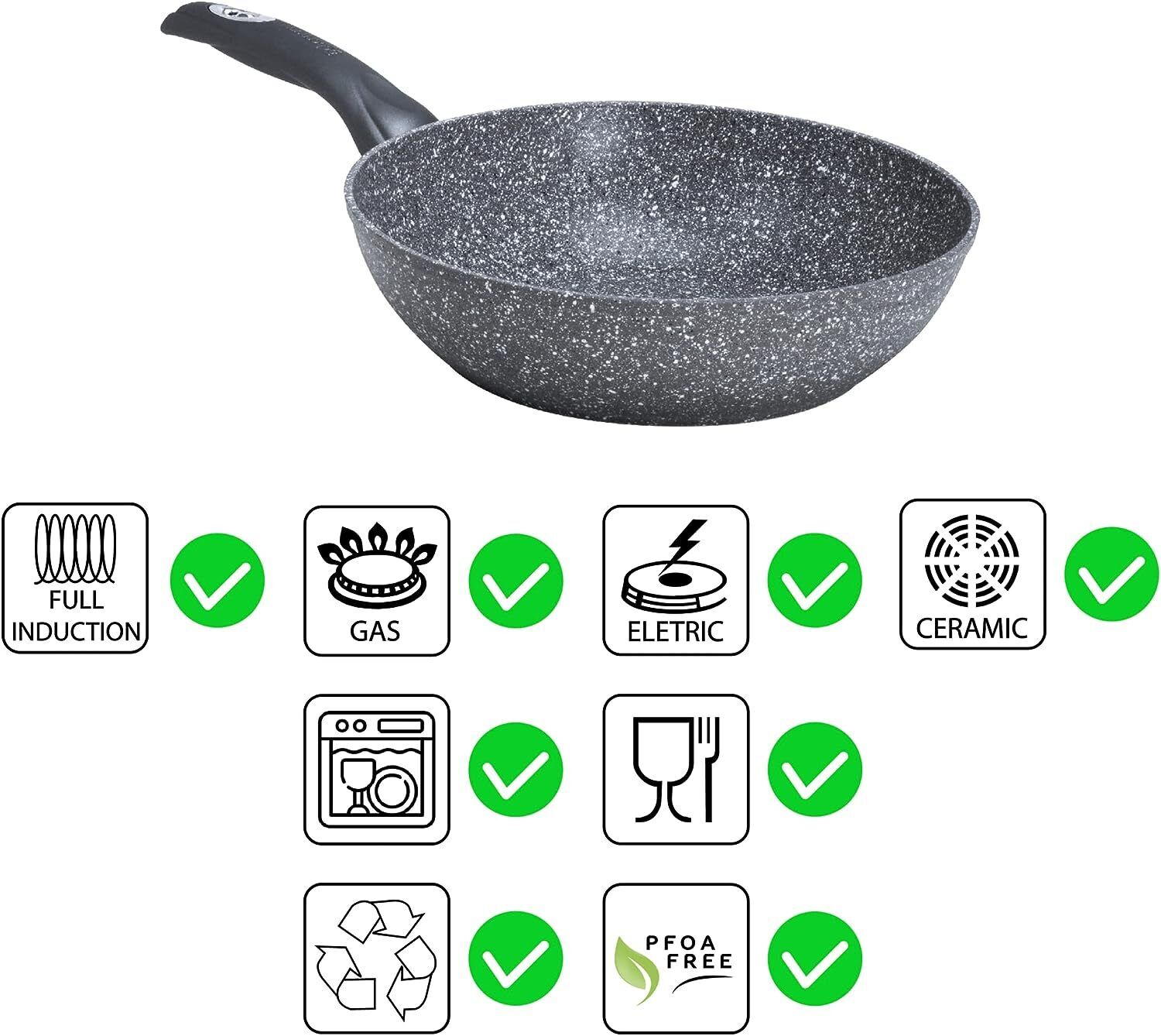 Aeternum Madame Petravera Saltapasta Wok 28 cm, In Alluminio Antiaderente Effetto Pietra
