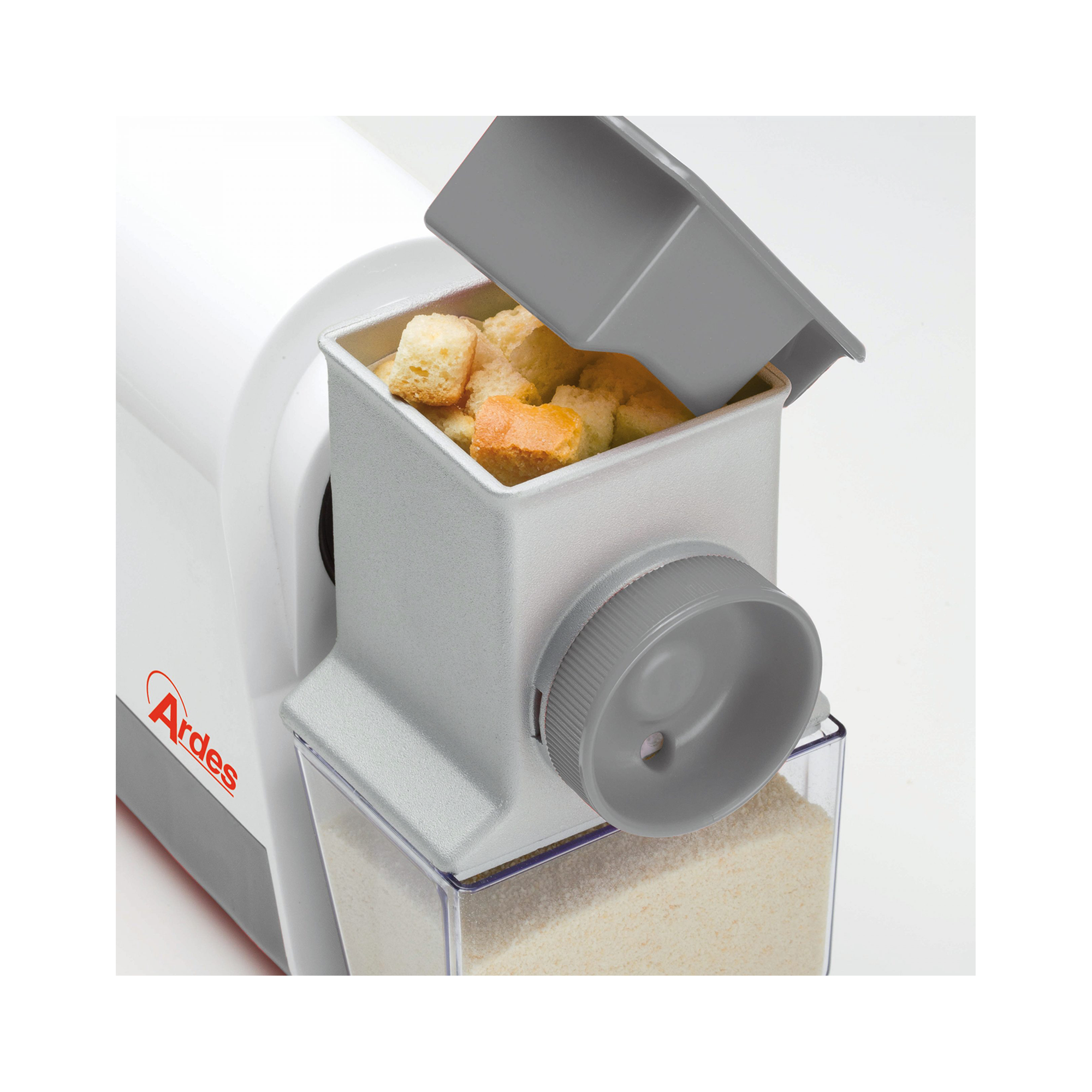 Grattugie elettricaLa grattugia elettrica AR7350 di Ardes è ideale per grattugiare pane, formaggio e noci. È caratterizzata da una scocca in alluminio e plastica, un rullo dentato in acciaio inossidabile removibile per una facile pulizia e un contenitore di raccolta lavabile in lavastoviglie. La potenza di 130 W garantisce un funzionamento efficiente. Inoltre, l'avvolgi cavo rende questa grattugia facile da riporre. Made in Italy, ha un peso di soli 1,3 kg.