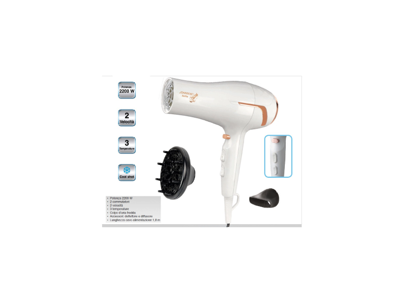 AsciugacapelliL'asciugacapelli Johnson Soffia è il prodotto ideale per chi desidera un look perfetto in un attimo. Grazie alla sua potenza di 2200 W, asciuga i capelli in modo rapido e uniforme, senza danneggiarli.