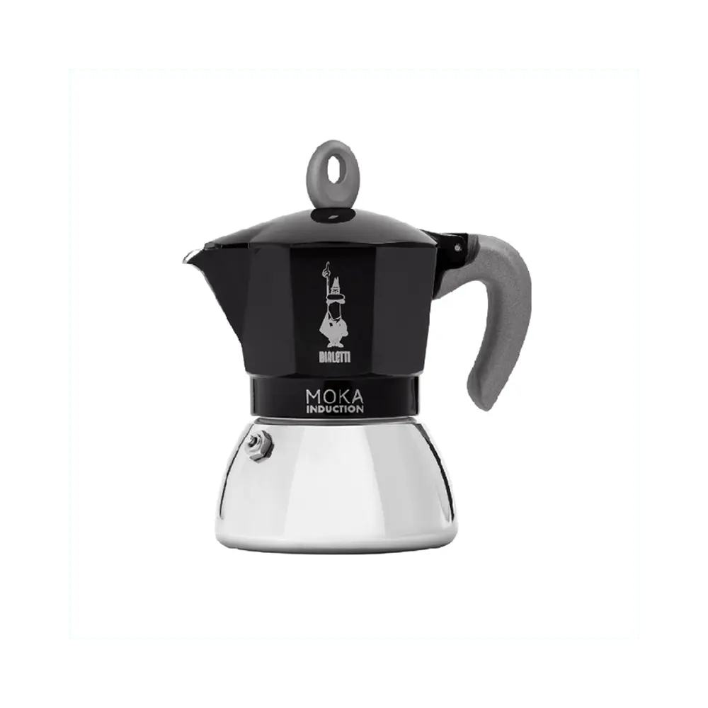 Scopri Moka Induction Nera, la caffettiera che unisce tradizione e innovazione. Adatta all'utilizzo sui piani cottura a induzione, offre prestazioni superiori grazie alla sua caldaia bi-layer.