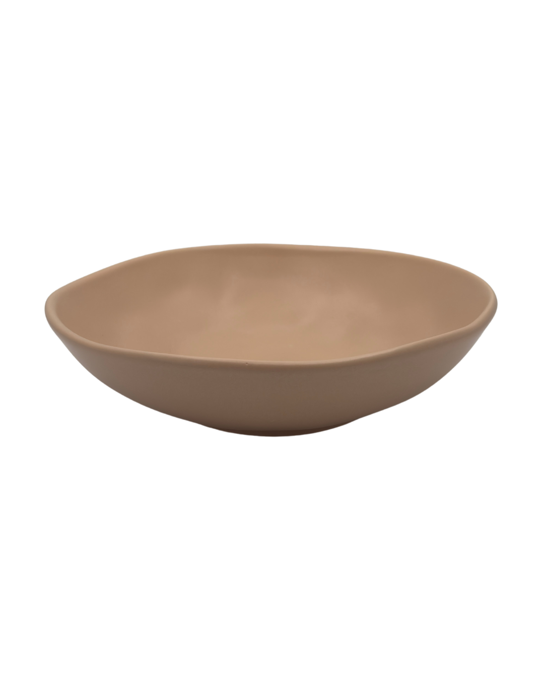 Design nordico caldo – Linee organiche irregolari con finitura opaca marrone e crema.