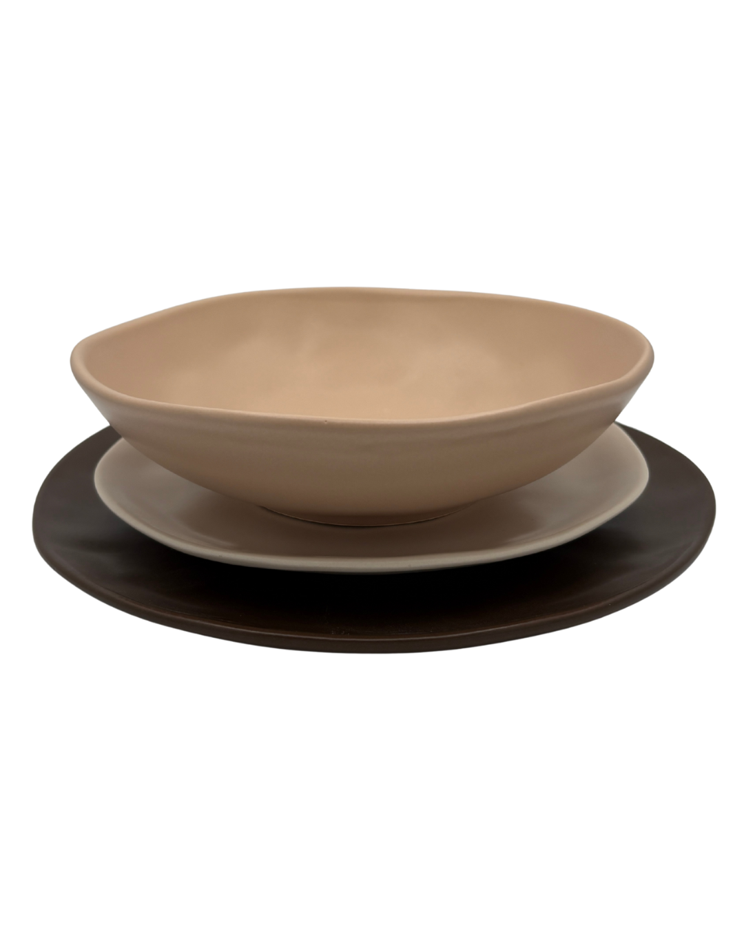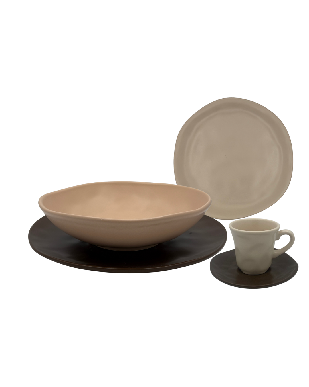 Design organico e moderno – Forme morbide effetto artigianale con elegante finitura opaca nei toni cappuccino e crema.