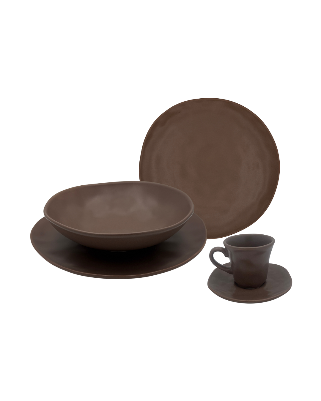 Omniacasa Organic Tortora – Servizio Piatti + Caffè 30 Pezzi in Stoneware