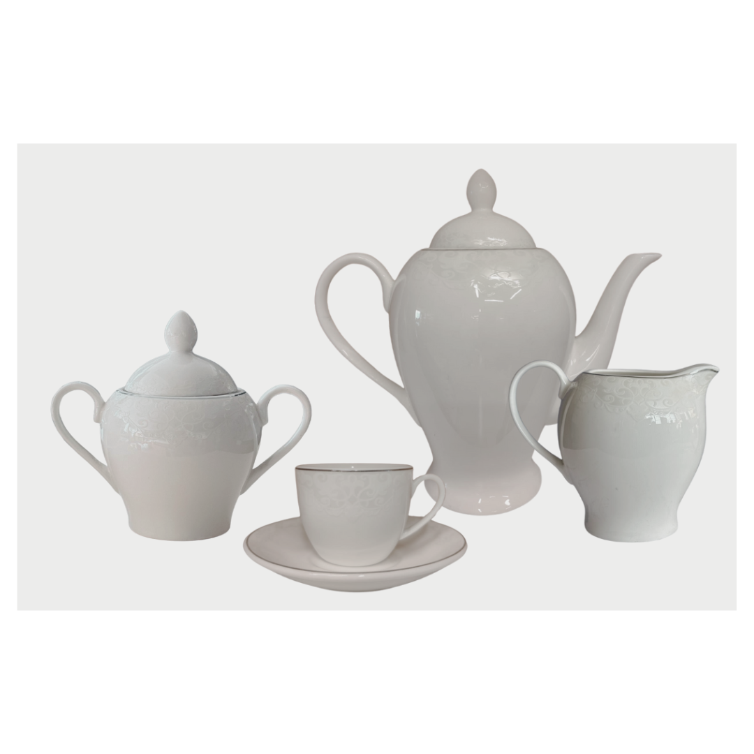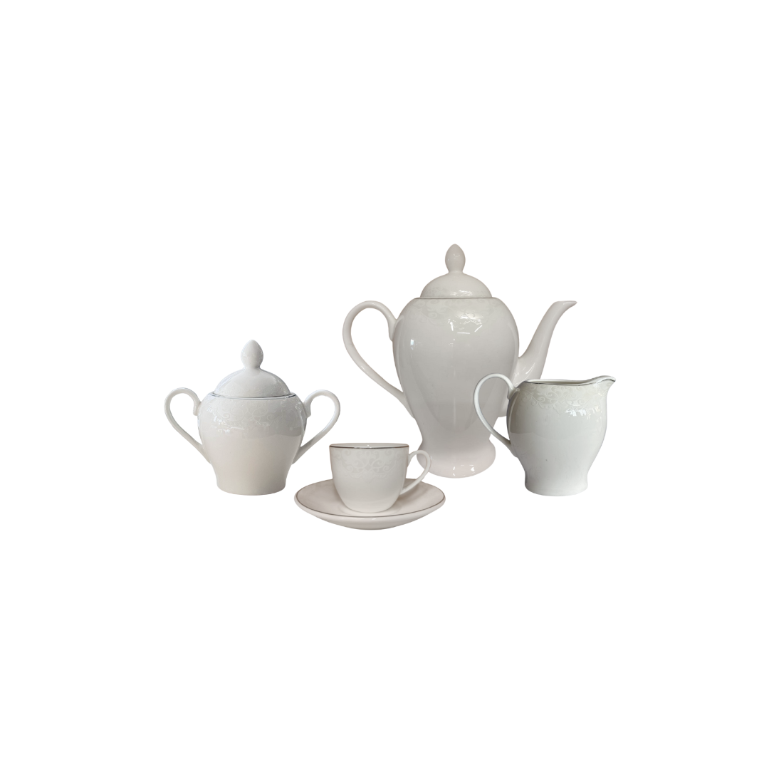 Omniacasa Servizio Caffè 29 Pezzi in Porcellana Bianca e Argento Design Platin
