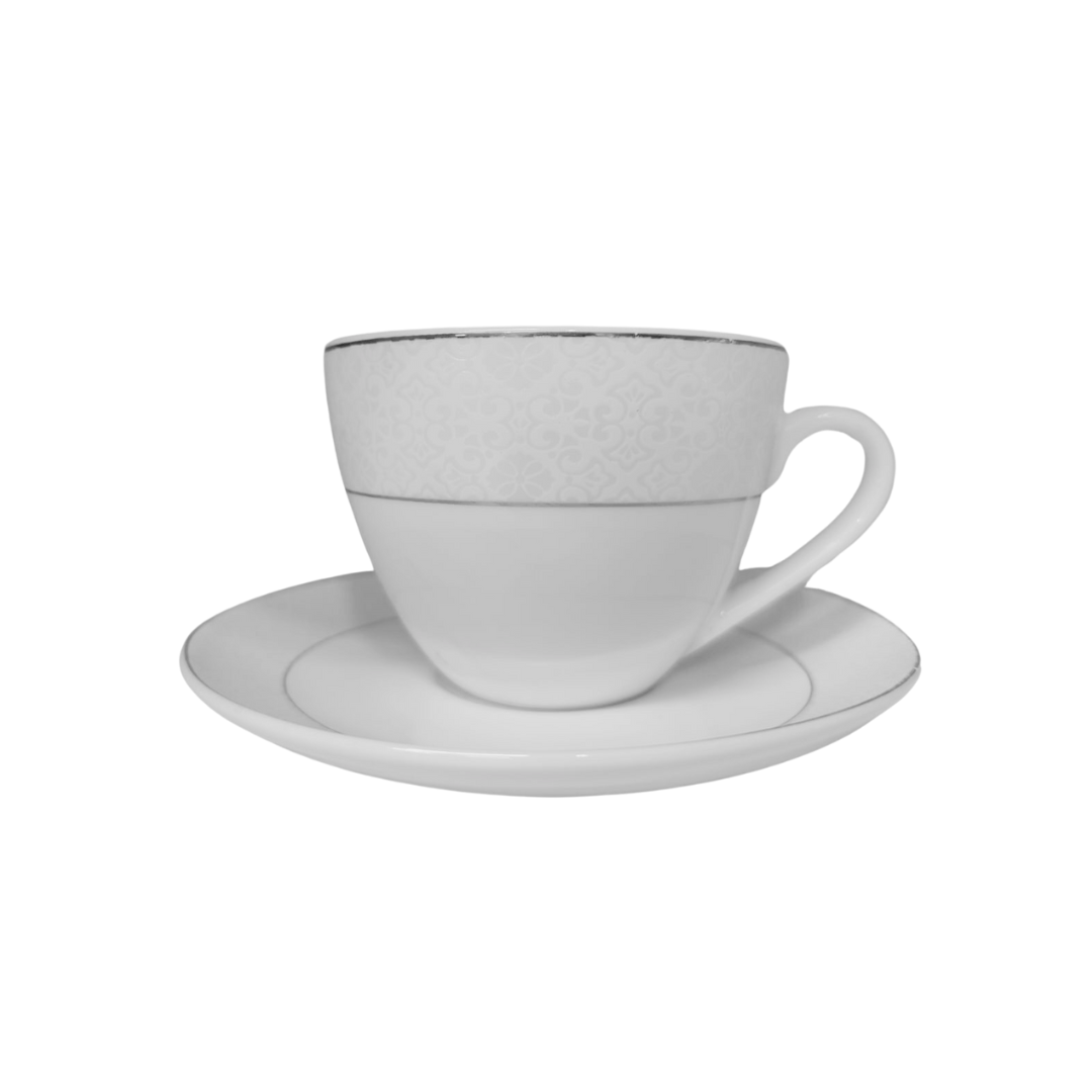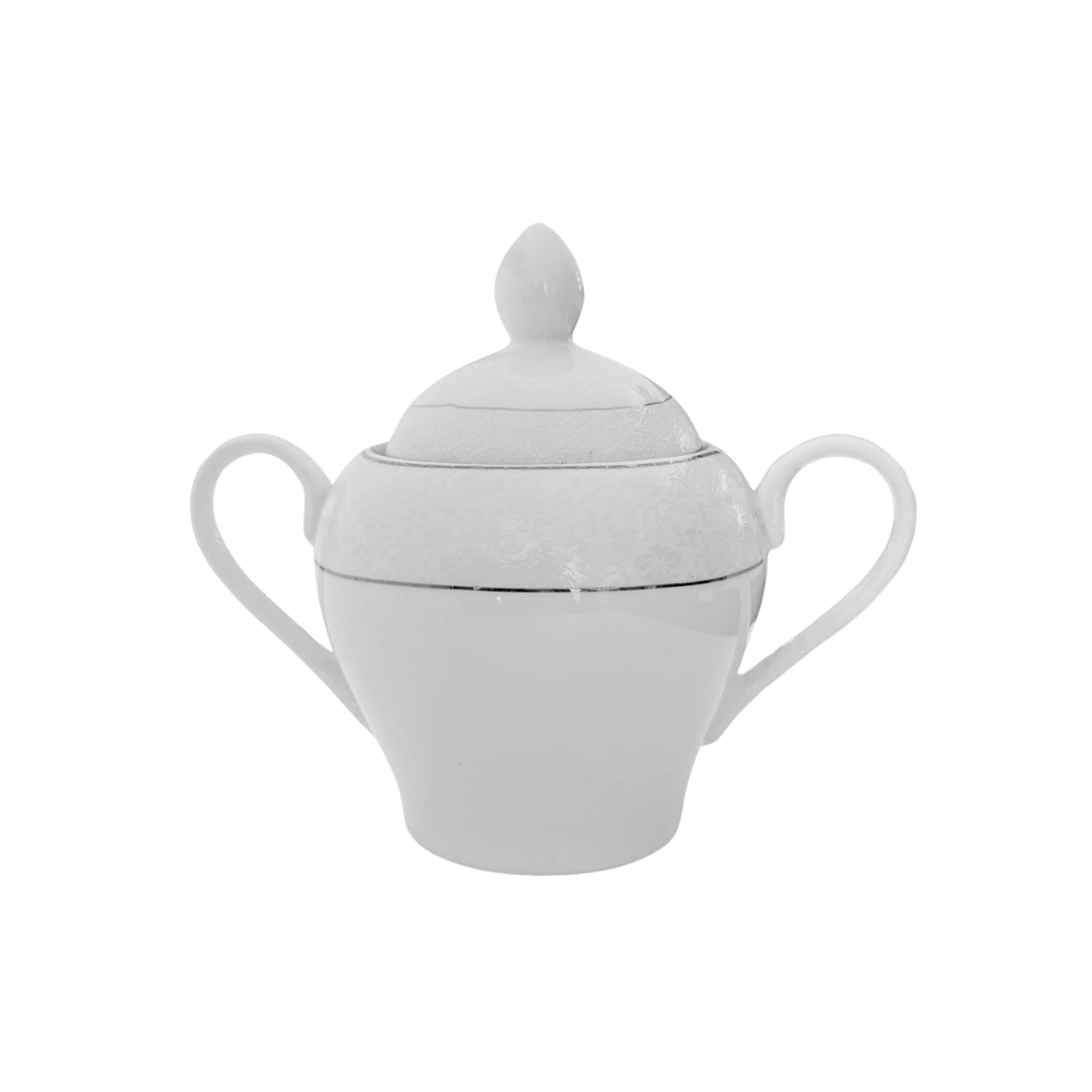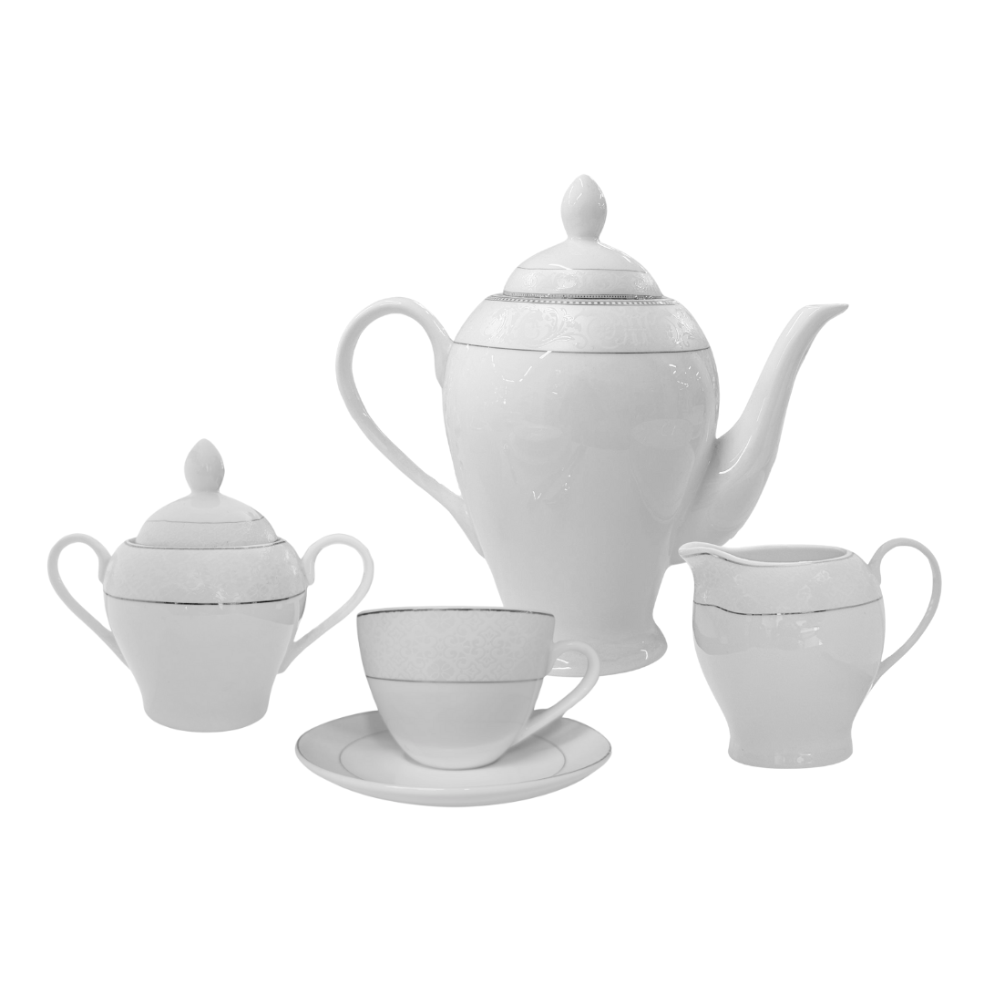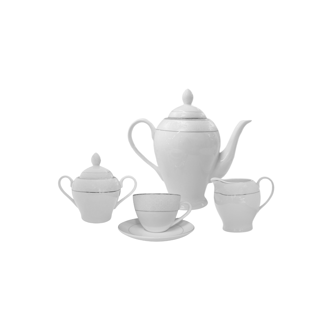 Omniacasa Servizio da tè 29 pezzi in porcellana bianca e argento