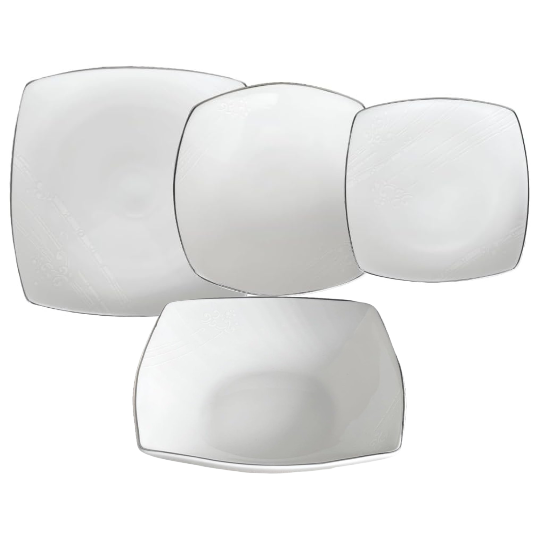 Omniacasa Servizio piatti 20 pezzi Livy Filo Platino in porcellana bianca