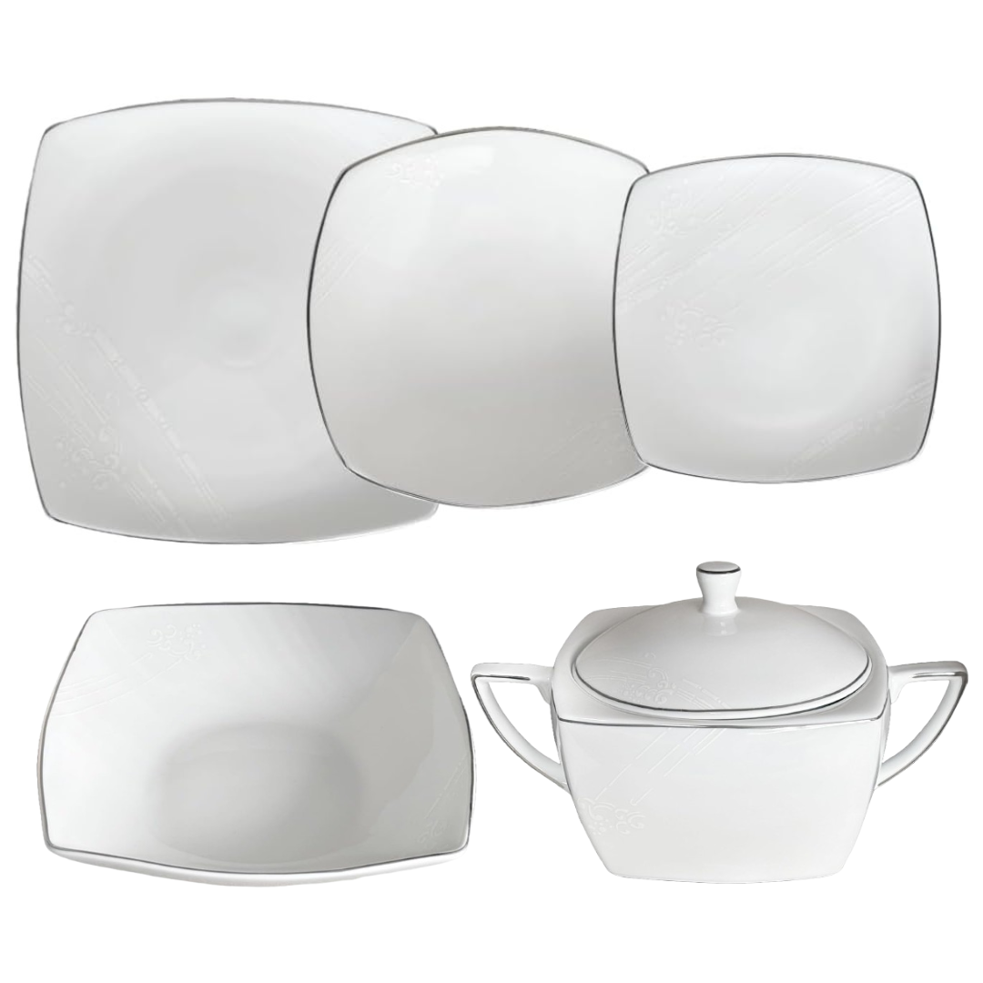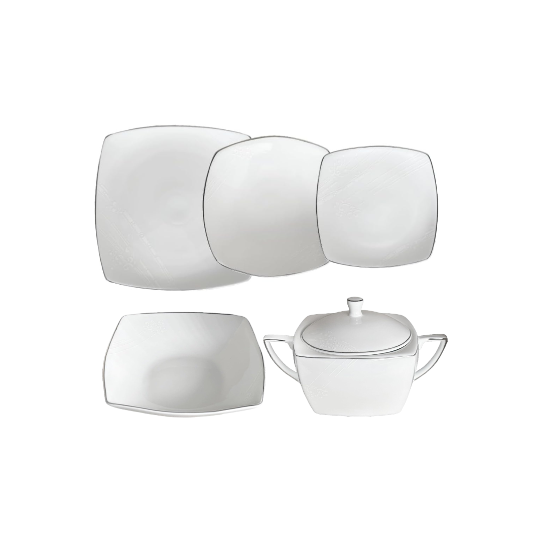 Omniacasa Servizio piatti 41 pezzi Livy Filo Platino in porcellana bianca