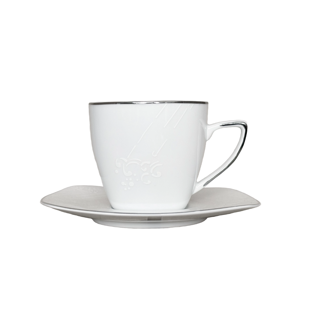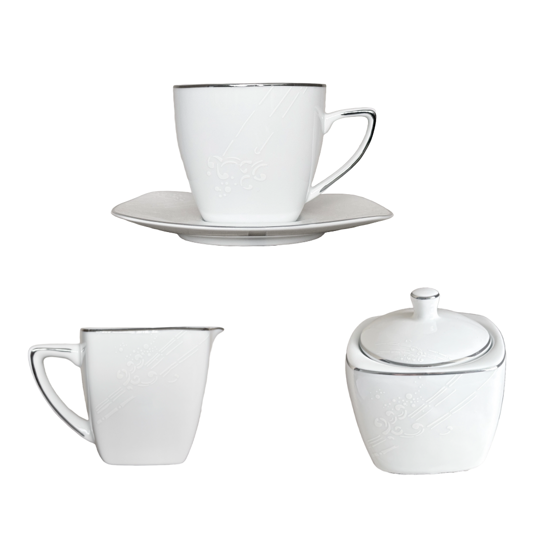 Omniacasa Servizio tè 14 pezzi Livy filo platino in porcellana bianca