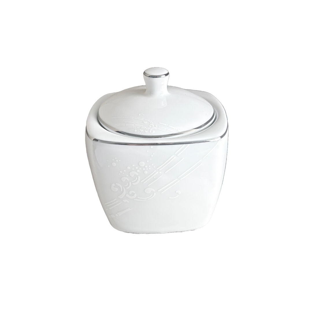 Materiale: Porcellana bianca con elementi in rilievo e con filo platino