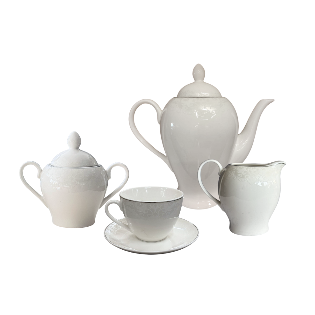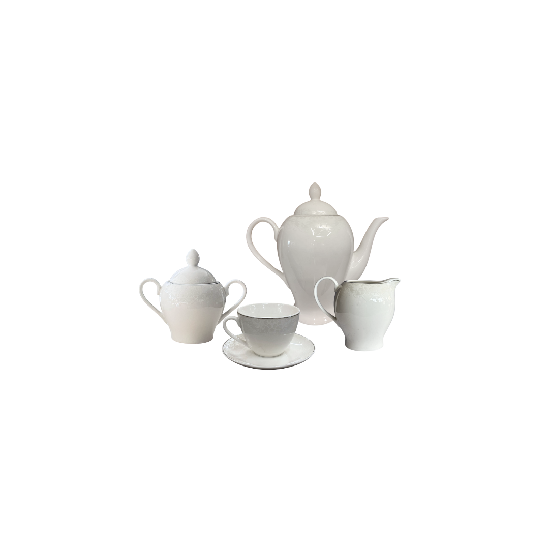 Omniacasa Servizio Tè 29 Pezzi in Porcellana Bianca e Argento Design Platin