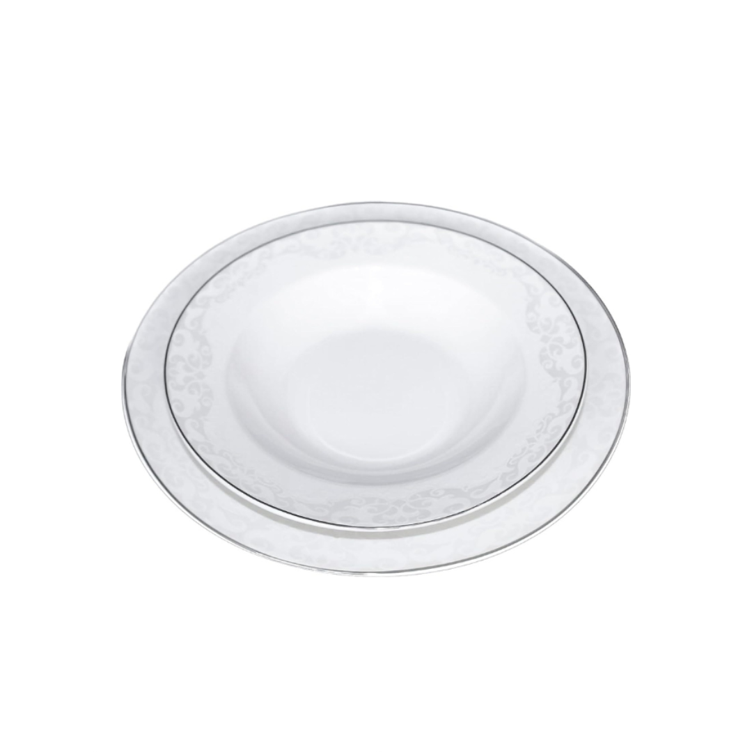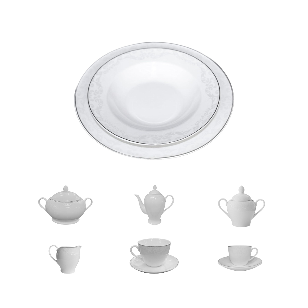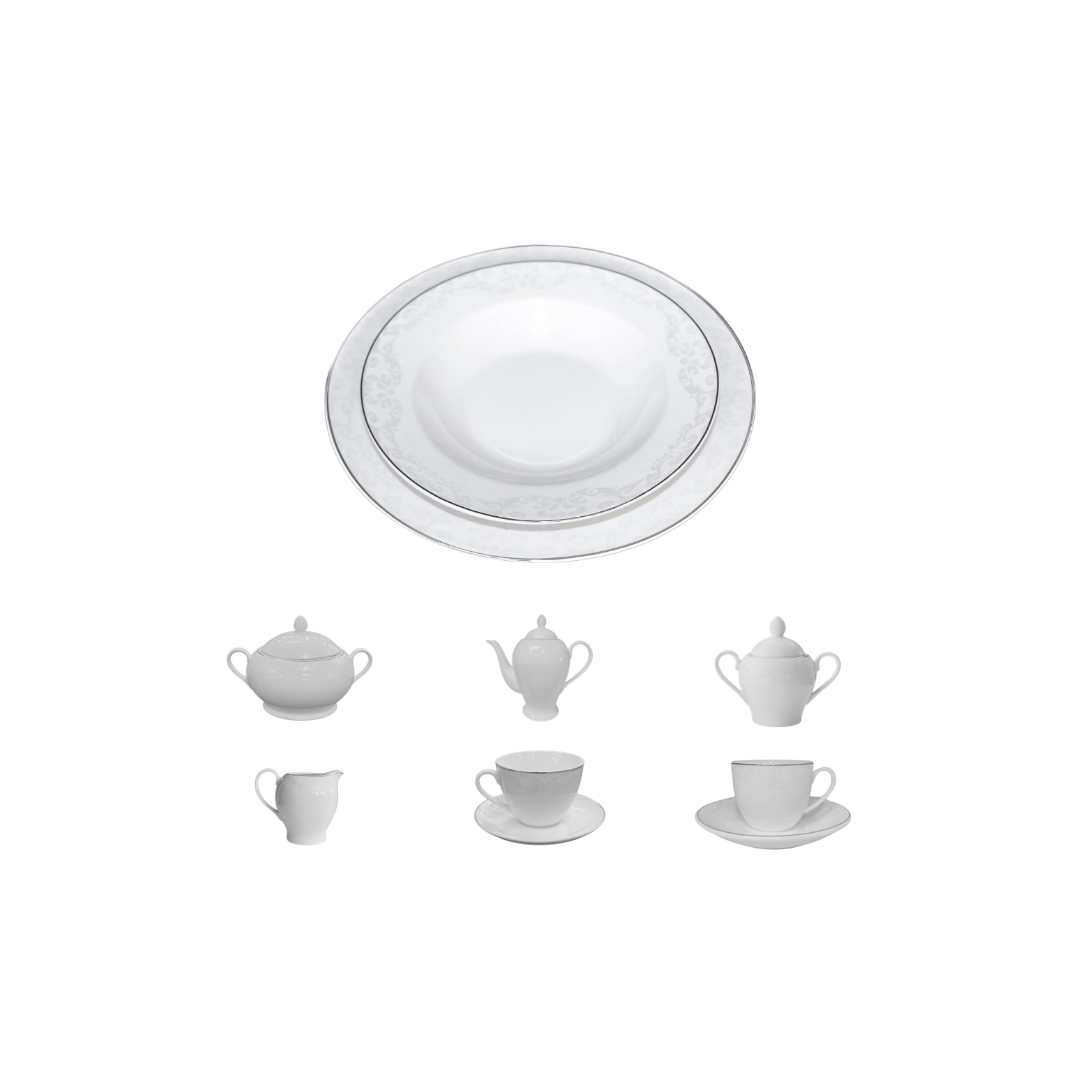 Omniacasa Servizio Tavola 95 Pezzi in Porcellana Bianca e Argento Design Platin