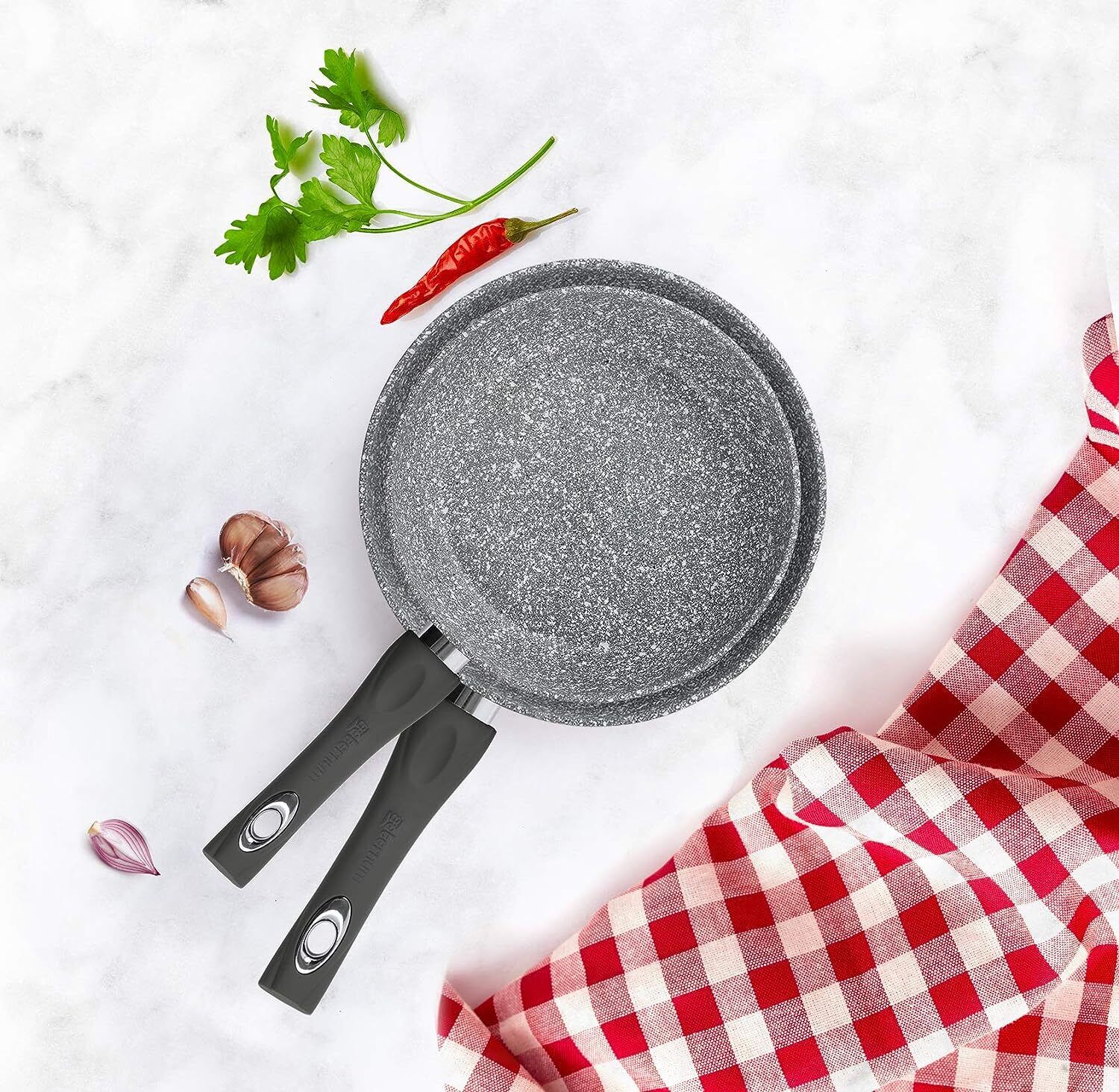 La padella antiaderente Aeternum Madame Petravera 3.0 da 32 cm è progettata per offrire qualità professionale. Il corpo in alluminio forgiato ad elevato spessore (fino a 3,5 mm) garantisce una distribuzione uniforme del calore, assorbendo ed emettendo gradualmente energia per risultati di cottura ottimali. Il design ergonomico dei manigli offre comfort e stile. Con una superficie in soft touch e il brand in rilievo, la presa è sicura e comoda. L’innovativo rivestimento esterno “Petra” unisce estetica moderna alla solidità della pietra, conferendo alla padella un carattere distintivo. Il rivestimento antiaderente Petravera Pro, arricchito con minerali naturali, garantisce resistenza e antiaderenza. Prepara piatti genuini senza olii e grassi, grazie a una cucina sana ed equilibrata. Sfrutta l’efficienza energetica del nuovo fondo “Full Induction”. Risparmia fino al 30% di energia grazie alla distribuzione uniforme del calore su piani a induzione. La padella Madame Petravera 3.0 è rispettosa dell’ambiente. Realizzata in alluminio 100% riciclato, contribuisce a ridurre il consumo di risorse naturali. Con dimensioni di 32 x 32 cm e 1,33 kg, è adatta a piatti generosi. Lavabile in lavastoviglie, la padella offre convenienza e prestazioni durature. Scopri l’equilibrio tra funzionalità e sostenibilità con Aeternum Madame Petravera 3.0. Aggiungi questa padella di alta qualità alla tua cucina e goditi risultati culinari eccezionali ogni giorno.