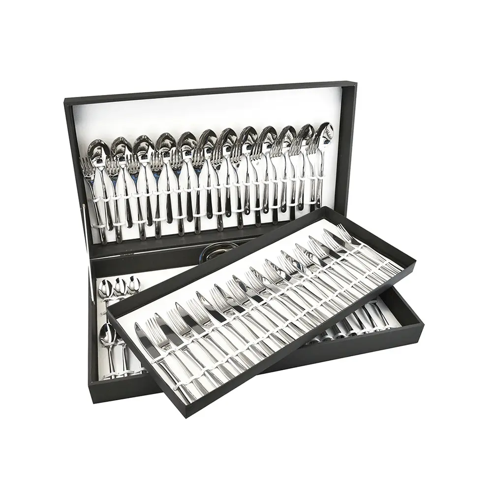 Il set di posate Segno, racchiuso in un astuccio da 75 pezzi, si compone di 12 coltelli da tavola economici di 22 cm, 12 forchette da tavola di 20 cm, 12 cucchiai da tavola di 20 cm, 12 coltelli da frutta economici di 20 cm, 12 forchette da frutta di 17 cm, 12 cucchiaini da caffè di 13 cm, un mestolo da 28 cm, un cucchiaio da servizio di 23 cm e una forchetta da servizio di 23 cm. Questo set rappresenta l'essenziale per una tavola ben apparecchiata, riuscendo a coprire tutte le esigenze, sia per i pasti quotidiani sia per occasioni speciali. La ricca varietà di pezzi rende questo set adatto a qualsiasi tipo di servizio, dalla colazione alla cena formale.